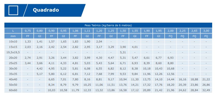 Podem ser fabricados com/em seção circular, quadrada, retangular ou de perfil especial.
